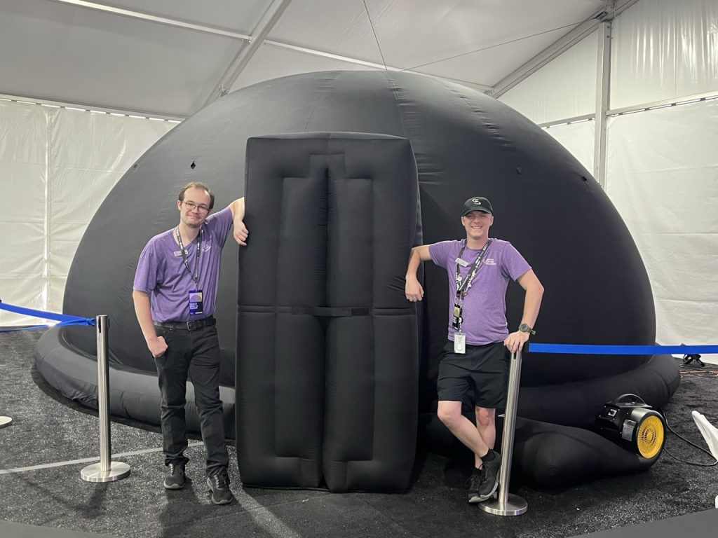 Our innovative portable planetarium is a dynamic tool for teaching young explorers about astronomy and space exploration. Students will be immersed in a digital recreation of the sky, to study concepts like celestial motions, or even travel through our solar system and beyond!